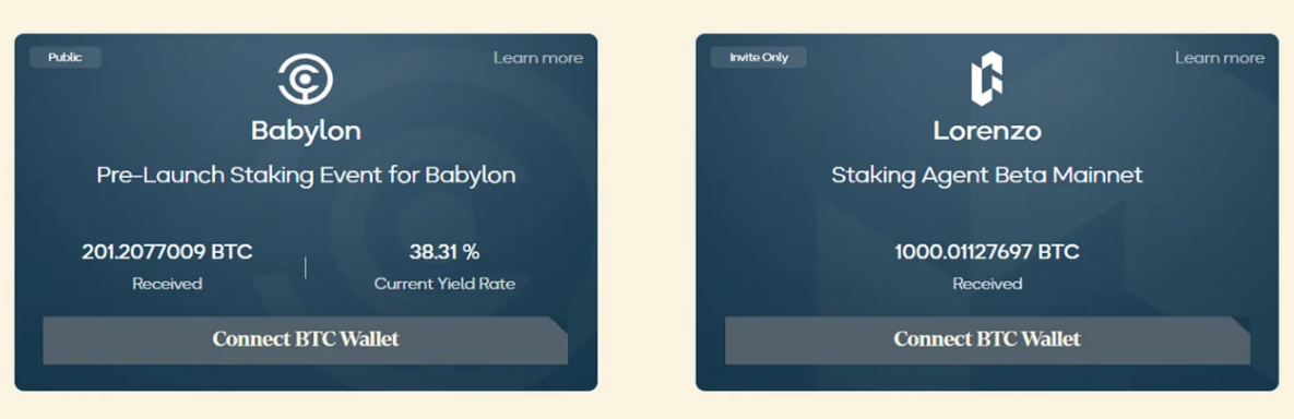 基于 Babylon,Lorenzo 允许比特币持有者将 BTC 转换为 stBTC,参与比特币质押并获得奖励,而无需锁定资金。同时,Lorenzo 将 Liquid RestakingToken(LRT)分为流动性本金 Token(LPT)和收益积累 Token(YAT),计划未来构建利率互换、借代协议、结构化 BTC 收益产品和稳定币。该项目专注于构建高效的比特币流动性配置市场和流动性资产化。