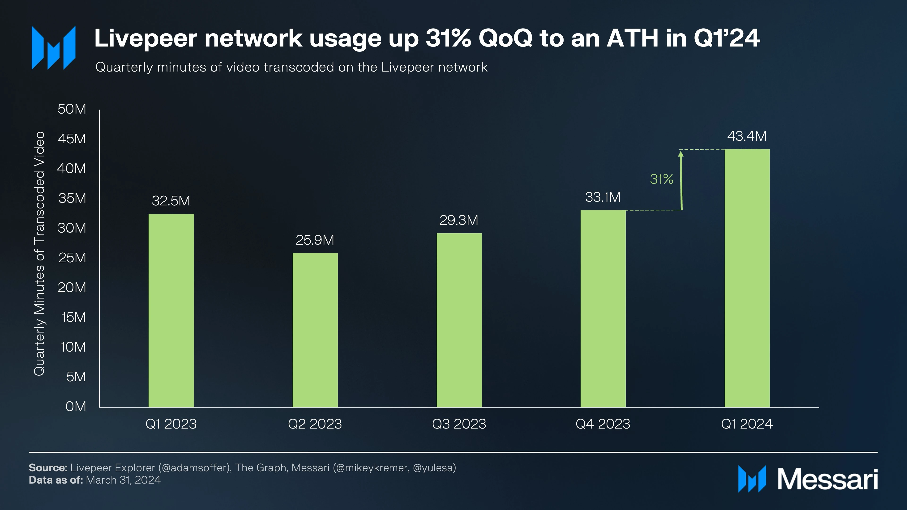 Livepeer 网络的使用量 2024 年Q1环比增长 31%