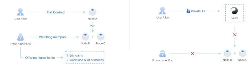 Sweeper 的工作方式就是监控公共内存池中的交易记录来实现抢先交易,但是 TAICHI 节点允许我们将签名的交易直接提交给矿工,而无需通过公共内存池进行广播,这意味着 Sweeper 很大概率是监控不到的,也就有了抢跑 Sweeper 的可能性(公共内存池指的是那些已经广播但尚未被打包进区块的交易的集合)。