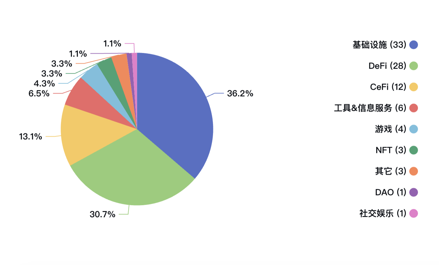 除了基建,Hack VC 其次押注 DeFi 与 CeFi,其中投资 DeFi 项目 28 笔,占比 28% ;CeFi 领域,投资了 12 笔,占比 12% ,知名投资项目包括: