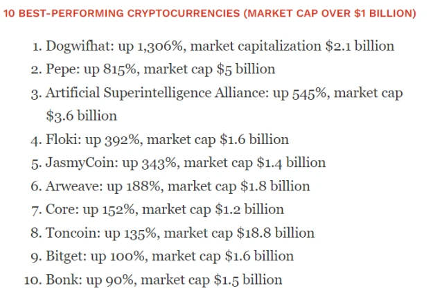 福布斯:2024上半年市值超10亿美金的十佳货币