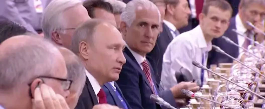 2018 年我与弗拉基米尔·普京坐在一起。当时,俄罗斯政府中的许多人都表示愿意「对加密货币持开放态度」。