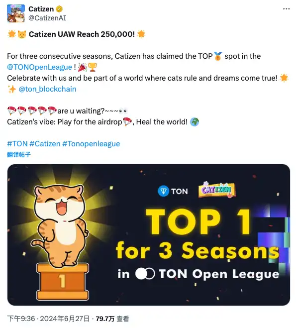 「我前段时间和各种传统游戏公司聊,他们都对 TON 链上现在的各种小游戏市场很感兴趣,其中就包括盛大游戏。」Sunny 对我透露。