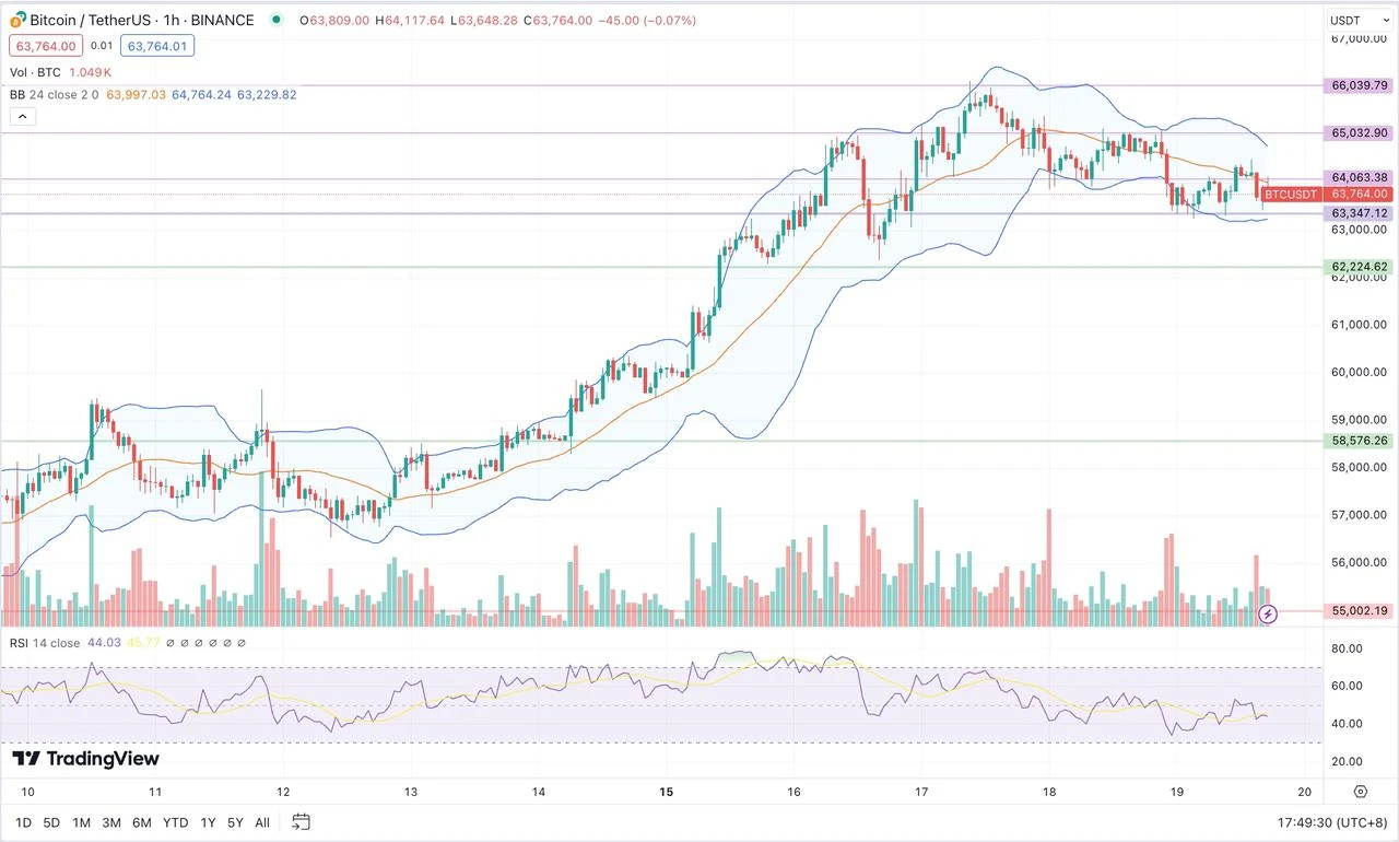 已破产的比特币交易所 Mt.Gox 在过去 24 小时里报告了多次未经授权的债权人账户登陆尝试,引发了债权人对剩余资产的安全以及币价可能遭受抛压带来的担忧,市场或担心该事件会对短期币价产生不利影响,再加上近两天的 ETF 流量骤减,逐渐蔓延的避险情绪催生了对资产的抛售,使得 BTC 价格回调至 64000 美元下方,再度测试关键支撑位。