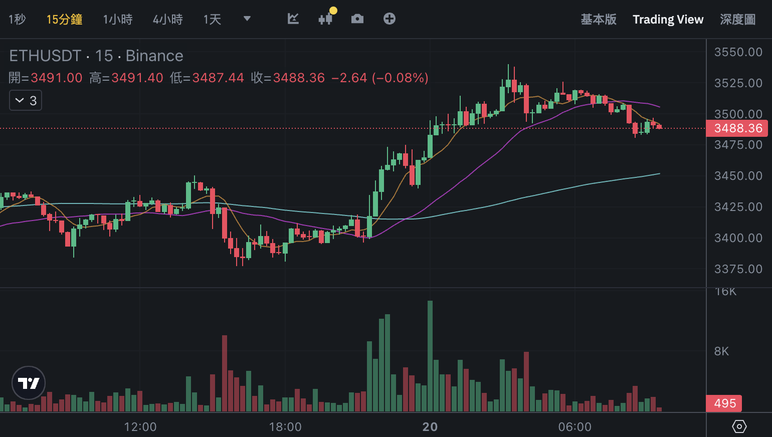 截稿前现报 3,488 美元,近 24 小时上涨 2.21%。