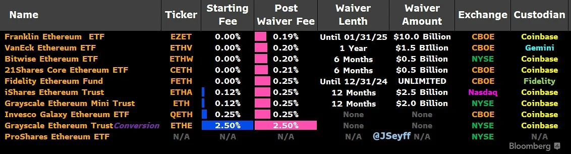 9 档以太坊现货 ETF 费用出炉