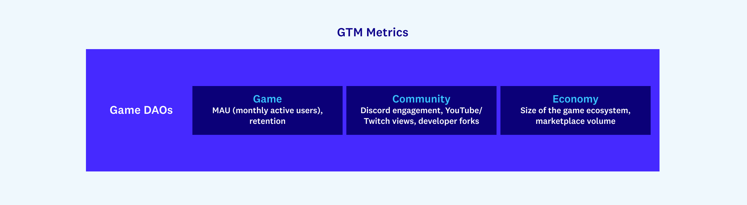 在 Web3 游戏中,市场推广 (GTM) 策略通过平台分发、玩家推荐和与 公会 的合作来构建。像 Yield Guild Games (YGG) 这样的公会允许新玩家通过借用他们可能无法负担的游戏资产来开始玩游戏。公会通过考察三个因素来选择支持哪些游戏:游戏质量、社区实力以及游戏经济的健壮性和公平性。游戏、社区和经济健康必须同时维持。