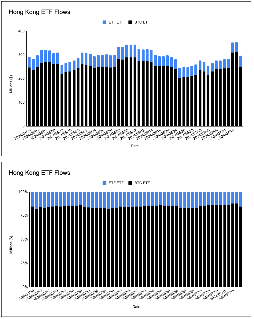 我们的估计得到了全球加密 ETP 数据的支持,这些数据表明市值加权篮子是主要策略(我们可能会看到 BTC ETF 的轮换流采用类似策略)。此外,由于 ETHE 在上线前按面值交易以及 mini trust 的引入,我们对潜在的上行惊喜持开放态度。