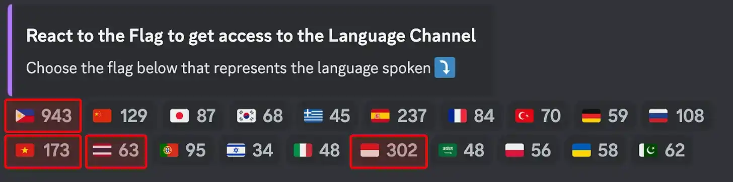 除了网站流量外,东南亚地区的受欢迎程度也体现在 Web3 游戏 Pixels 的 Discord 国家频道选择上。如上所见,东南亚国家的玩家数量异常高,约占总数的 53% 。我们估计,他们对 Web3 游戏的持续兴趣和高参与度是由以下三个因素驱动的: