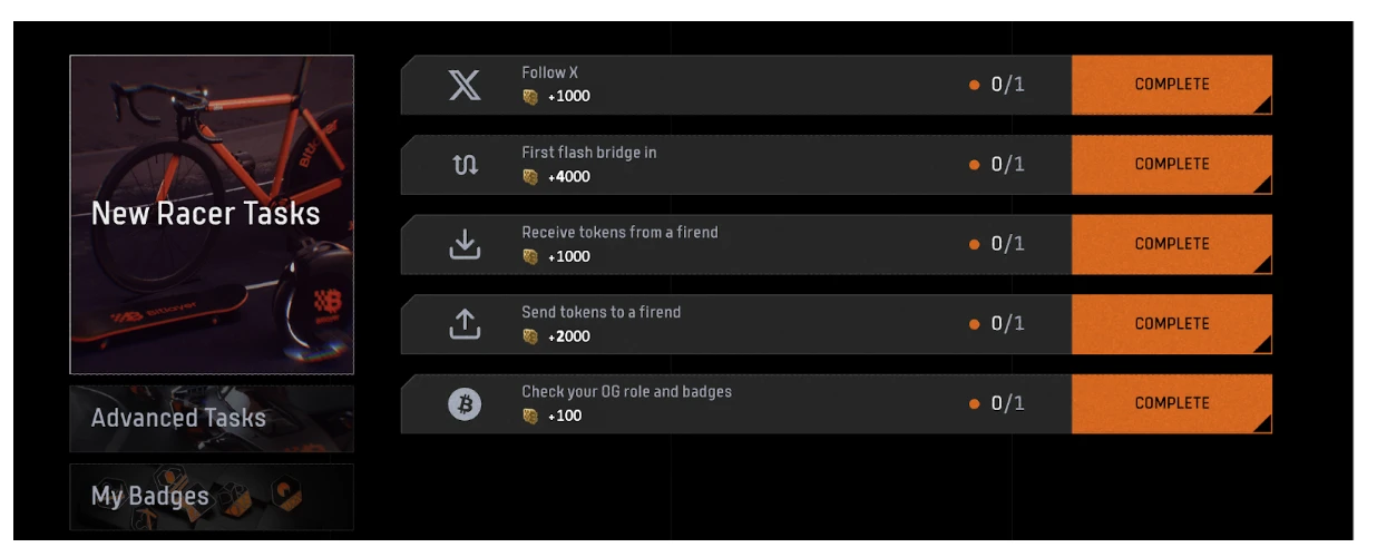 Bitlayer 精心设计了一系列新手引导任务,帮助新加入 Bitlayer 生态的用户了解用户中心的各项功能。用户的新手任务挑战包括熟悉用户中心的使用、关注 Bitlayer 官方 X 账户、使用闪电跨链完成一笔转账等任务后,即可累积相应的积分奖励。