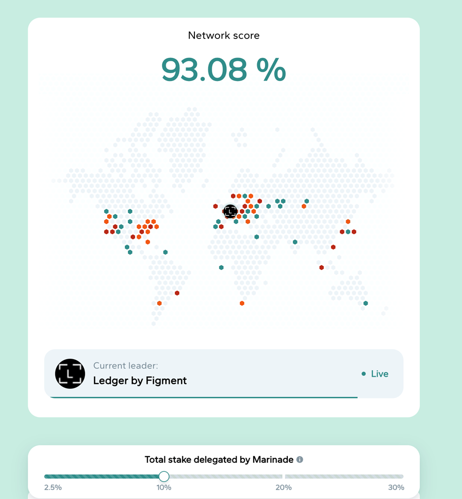 Marinade 将很快 更新其委托策略 ,目标是提升 Solana 安全性的去中心化。从 8 月 14 日起, 90% 的质押将根据 SAM 结果进行委托, 10% 根据 MNDE 投票进行委托,并且每个纪元的重新平衡上限将从 2% 提高到 5% 。目前约有 2% 的 SOL 质押通过 Marinade 进行委托,如果这一比例增加到 10% ,验证者的性能将从 72% 提升至 93% ,对去中心化产生积极影响。