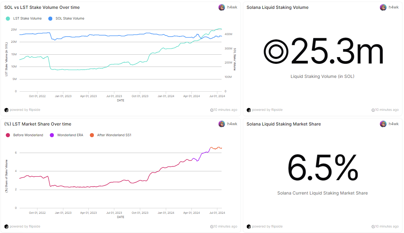 Sanctum 的 Wonderland 在 Solana 上将流动性质押代币 (LST) 交易量提高了 25% ,目前超过 2500 万 SOL