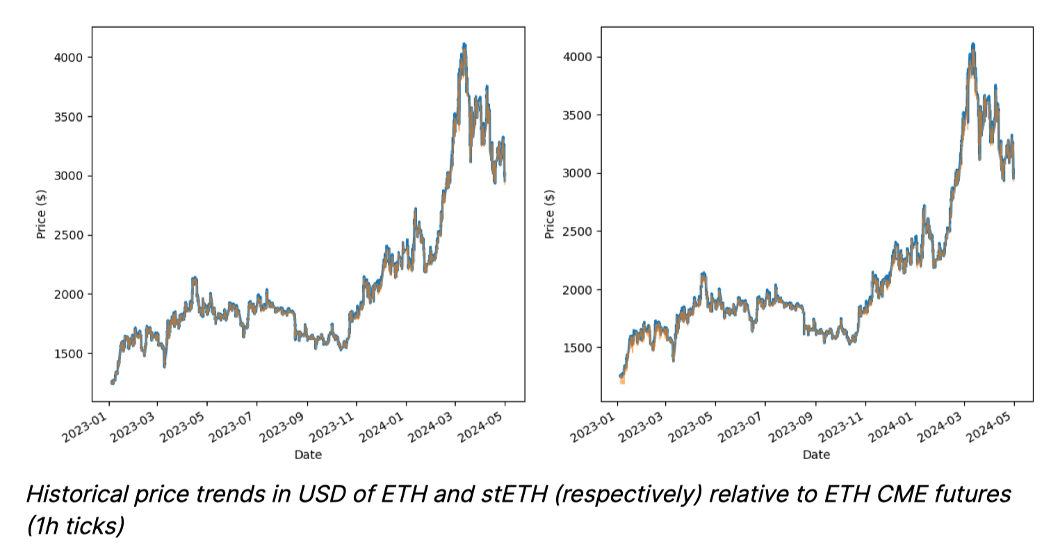 对于 stETH 数据,Steakhouse 使用 TradingView 的 API 获取 stETH/USD 的中心化交易所 (CEX) 对数据。对于 ETH 商品期货数据,我们依赖 CME 的逐笔历史数据。对于 ETH 现货价格,我们依赖 Coinbase 通过 TradingView API 提供的数据。我们的 Python 笔记本在 github 上可用。我们探索了长期相关趋势、提款开放以来的时间框架以及即时和详细市场反应的时间框架。