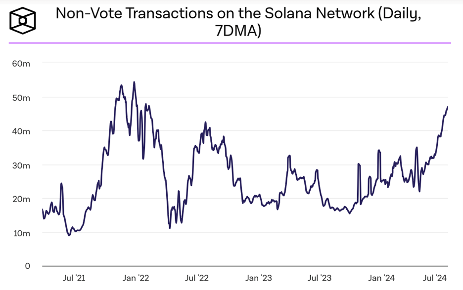Solana 的网络增长正在加速。随着 Solana 网络使用量的增加,验证者从 MEV 和交易费用中获得更多收入。这使得质押更有价值,并为 Marinade 提供了机会,创建一个链上市场以重新分配最大奖励给质押者。
