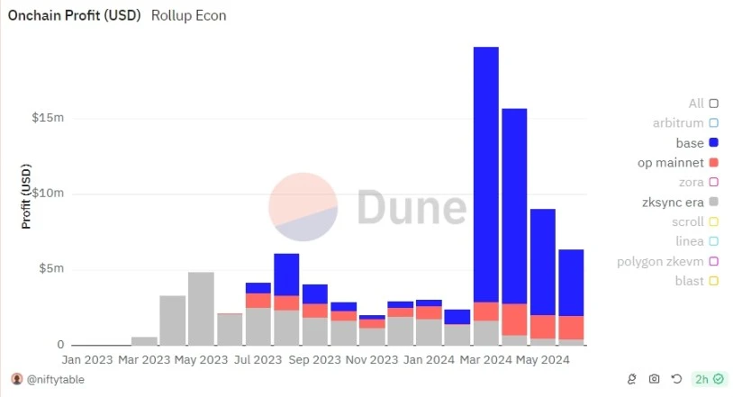 而曾经龙头老大 Arbitrum,由于过度押宝于 Web3 游戏,且在 Rollup Stack 战略行动迟缓,Rollup 收入在 4、 5 月份有所下滑,但在 7 月迅速恢复。