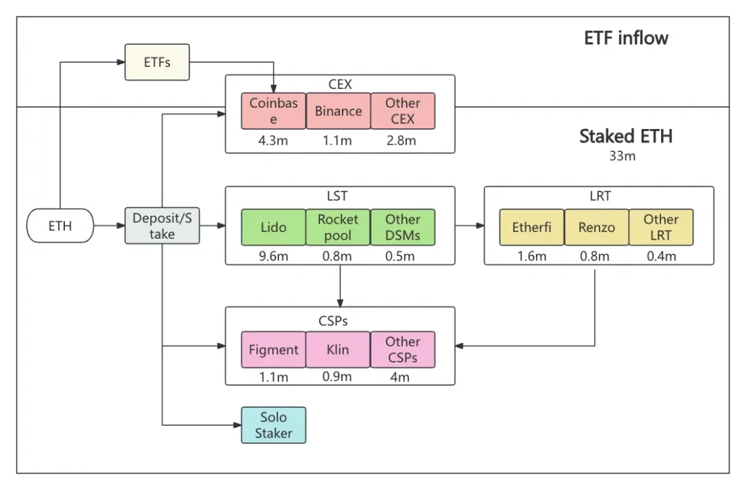 对于 CEX,随着以太坊 ETF 的通过,比例可能会进一步提高——比特币 ETF 中就多使用 Coinbase 作为资金托管人。