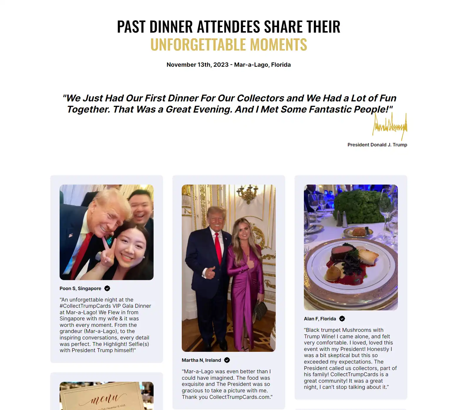 在去年的 11 月,「Mugshot Edition」大户们第一次享受了该项目承诺的「与川普共进晚餐」的赋能。