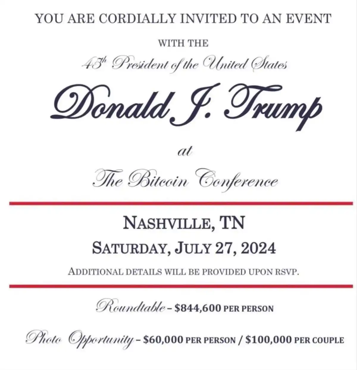 纳什维尔的 Bitcoin 2024 活动即将开始,我们会看到川普抛出哪些重量级的利好 Crypto 的言论吗?又或者,有没有一点点可能,川普在发言中提到 Ordinals,提到符文?