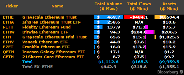 ETH 现货 ETF 首日净流出 1.65 亿镁