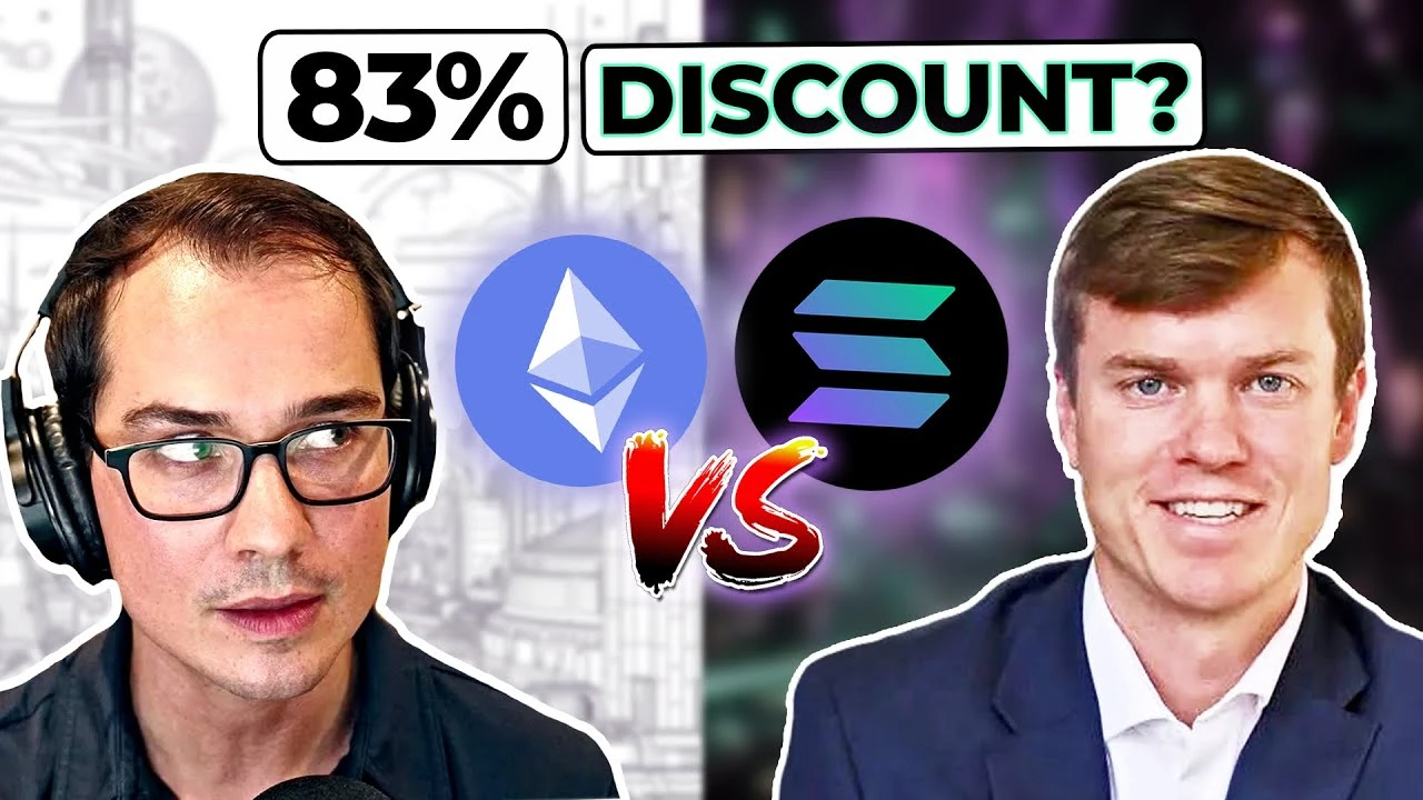Ryan: 我之所以从这些问题开始,是为了帮助我们的听众了解你对资产和投资方法的看法。这个框架对我们的对话很有价值。你上周发布了一份报告,引起了我的注意。这是一个很好的话题,我们可以将基本面分析应用于以太坊和索拉纳(Solana)这两种在本轮周期中获得大量关注的资产。你的报告标题“索拉纳是否应该比以太坊折价 83% ”引起了我的兴趣。你是从市值的角度来看待这个问题的,目前索拉纳的交易价格确实比以太坊低了 83% 。它应该如此吗?这是一项数据驱动的调查,我很欣赏你客观、以数据为中心的观点,这避免了去中心化和中心化之间的内斗和辩论。