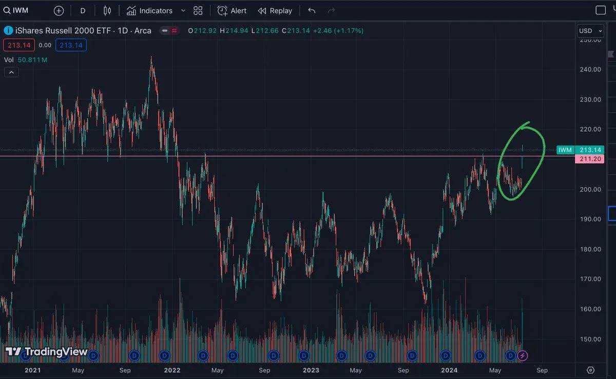 洞察: $IWM 代表小盘股,近期𫔭始突破。这一指数是衡量实体经济健康状况的重要指标。随著企业收益增加,更多资金通常会流入这些资产。