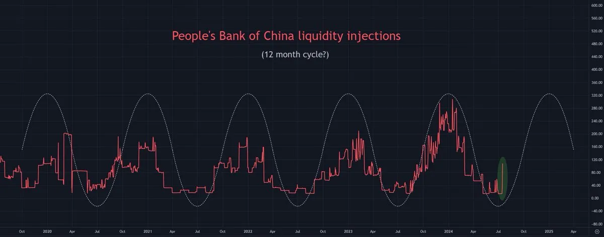 洞察:仅次于美国联準会,中国人民银行在全球流动性动态中扮演著重要角色。关注 PBoC 的流动性注入,这些注入𫔭始显现出动向。