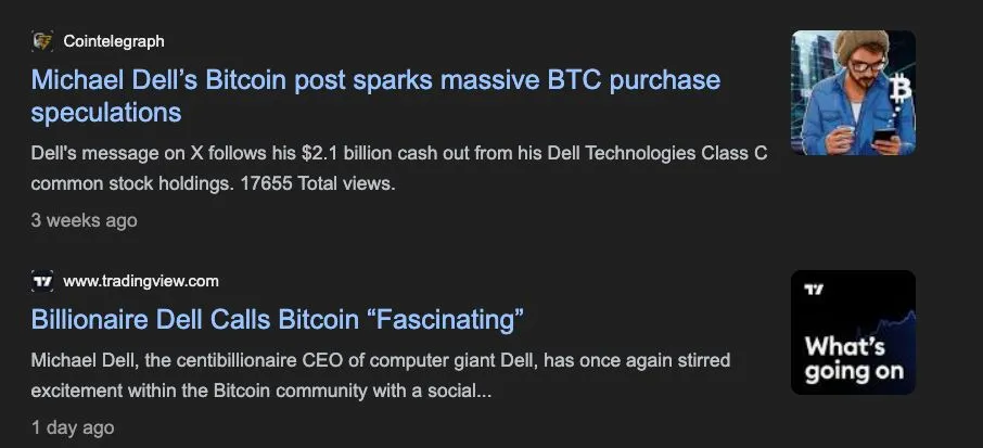 洞察:大公司购𧹒 $BTC 可能会引发市场狂热。例如,特斯拉在 2021 年购𧹒了 $15 亿 $BTC,影响了上一个周期。关注其他公司如戴尔的类似举动。