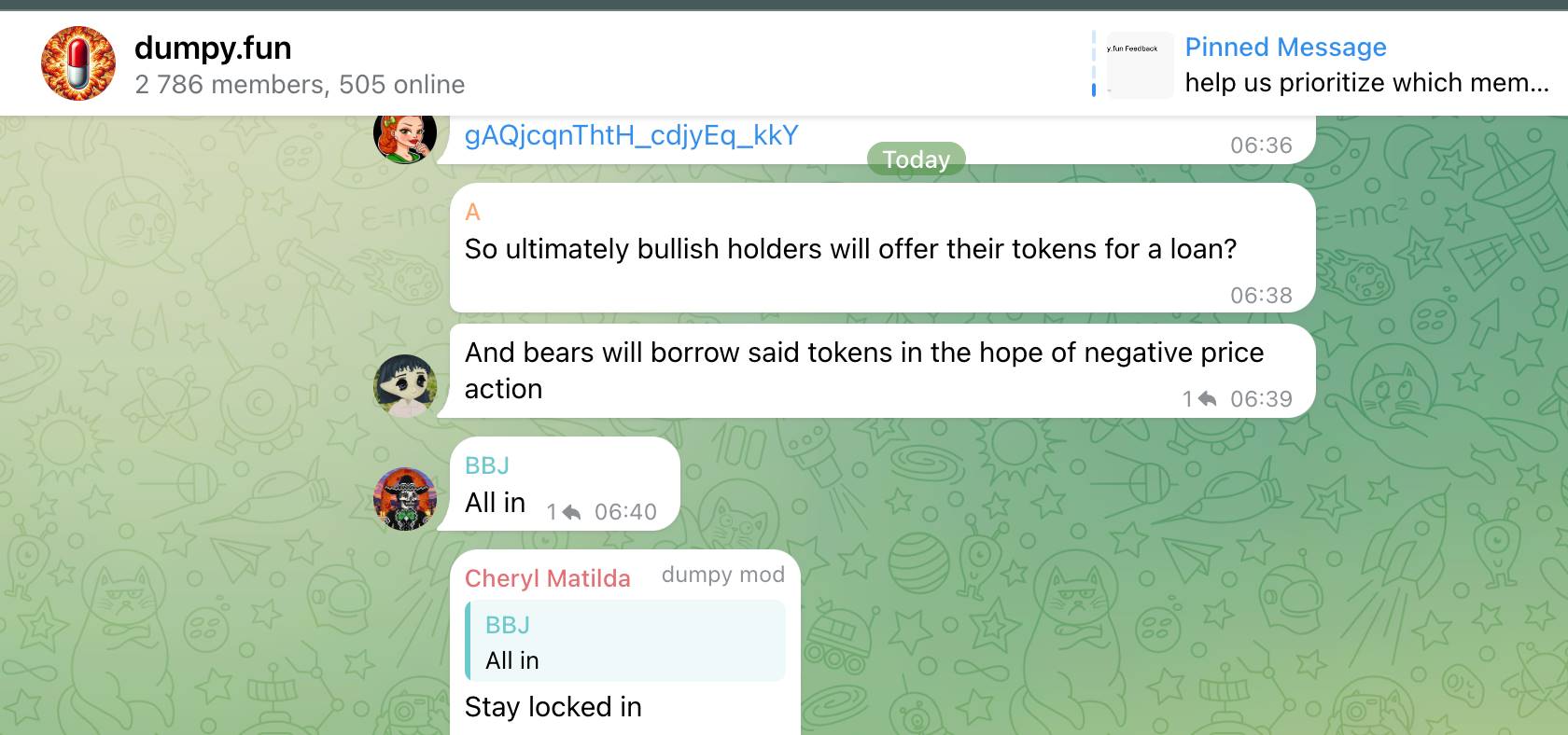 目前在官方电报社区里,平台已经发起了 meme 币投票,以让大家决定哪些币会上线并允许被做空。