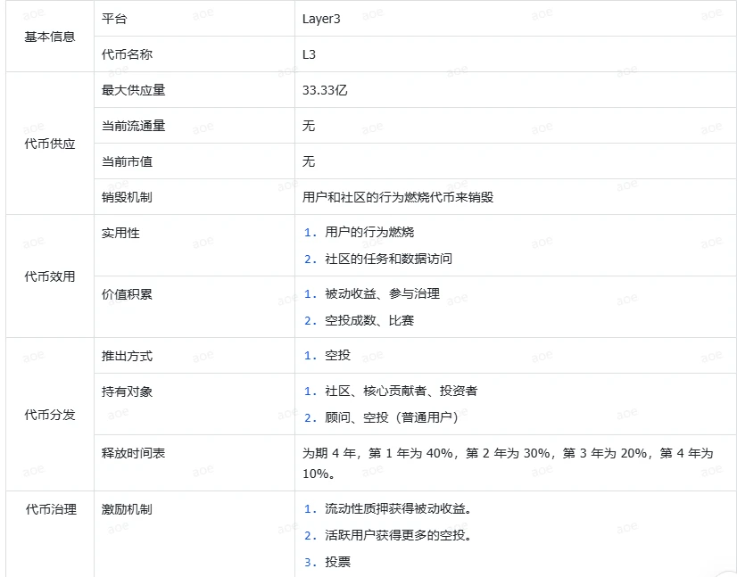 代币分配详细方案可阅读:《Distribution of Layer 3 Foundation》