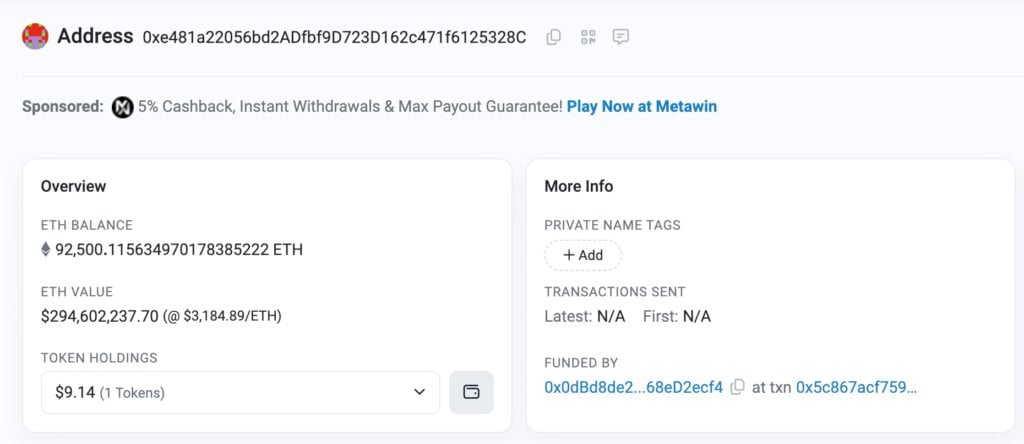 ? ? ? ? ? ? ? ? ? ? 92,499 #ETH (290,886,658 USD) transferred from unknown wallet to unknown wallet https://t.co/14EmSqulFH