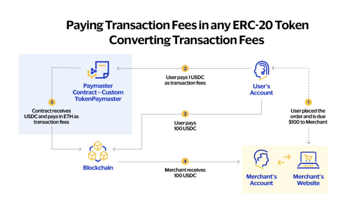 交易可以用不同的代币支付(例如,用 USDC 支付而不是 ETH)