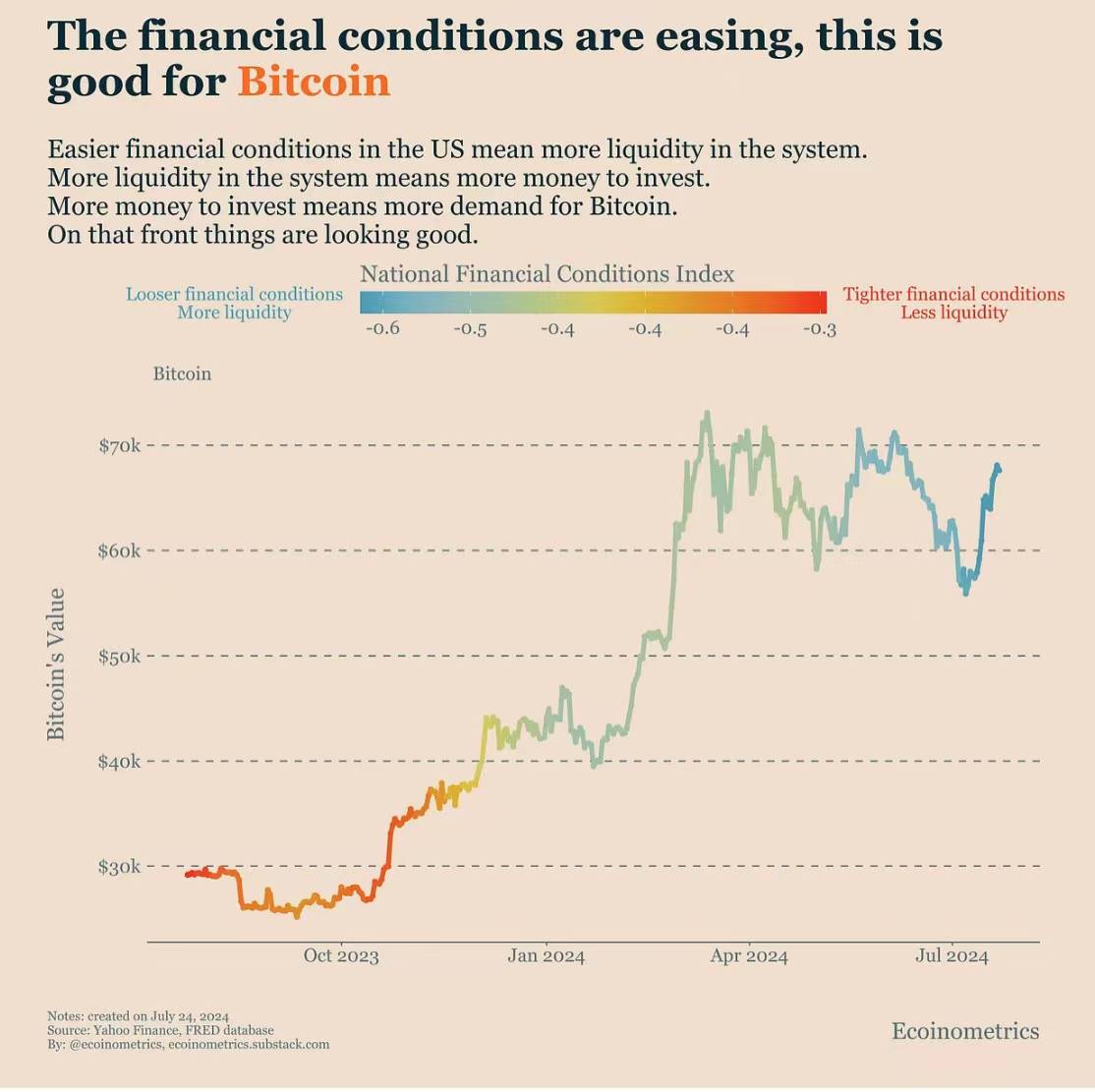 美国的金融状况正在放松,为比特币和相关资产创造了有利的环境。