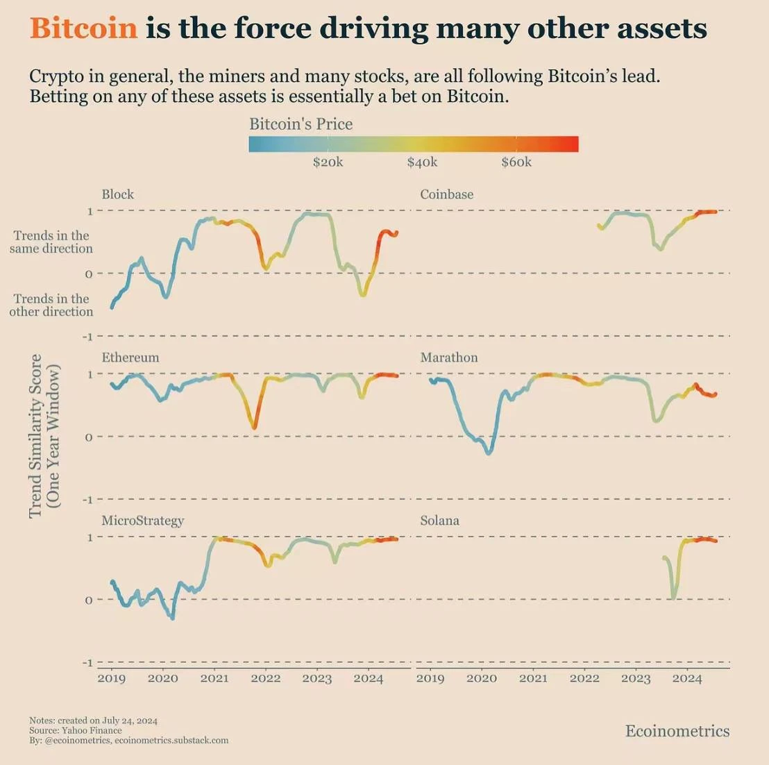 许多加密资产、矿工和相关股票都跟随比特币的走势。投资这些资产实际上是在押注比特币的方向。