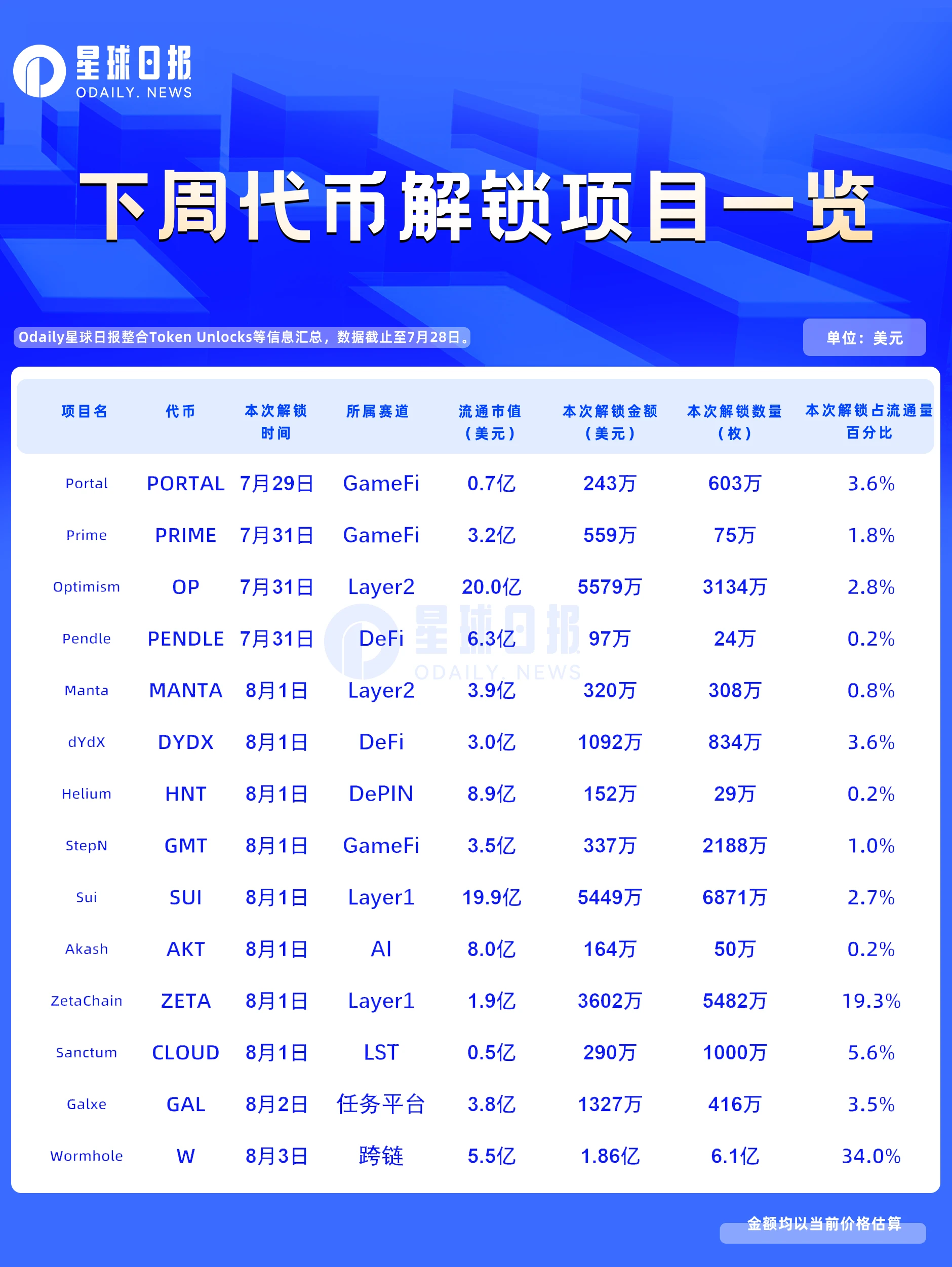 一周代币解锁:W迎来上线以来首次Cliff解锁
