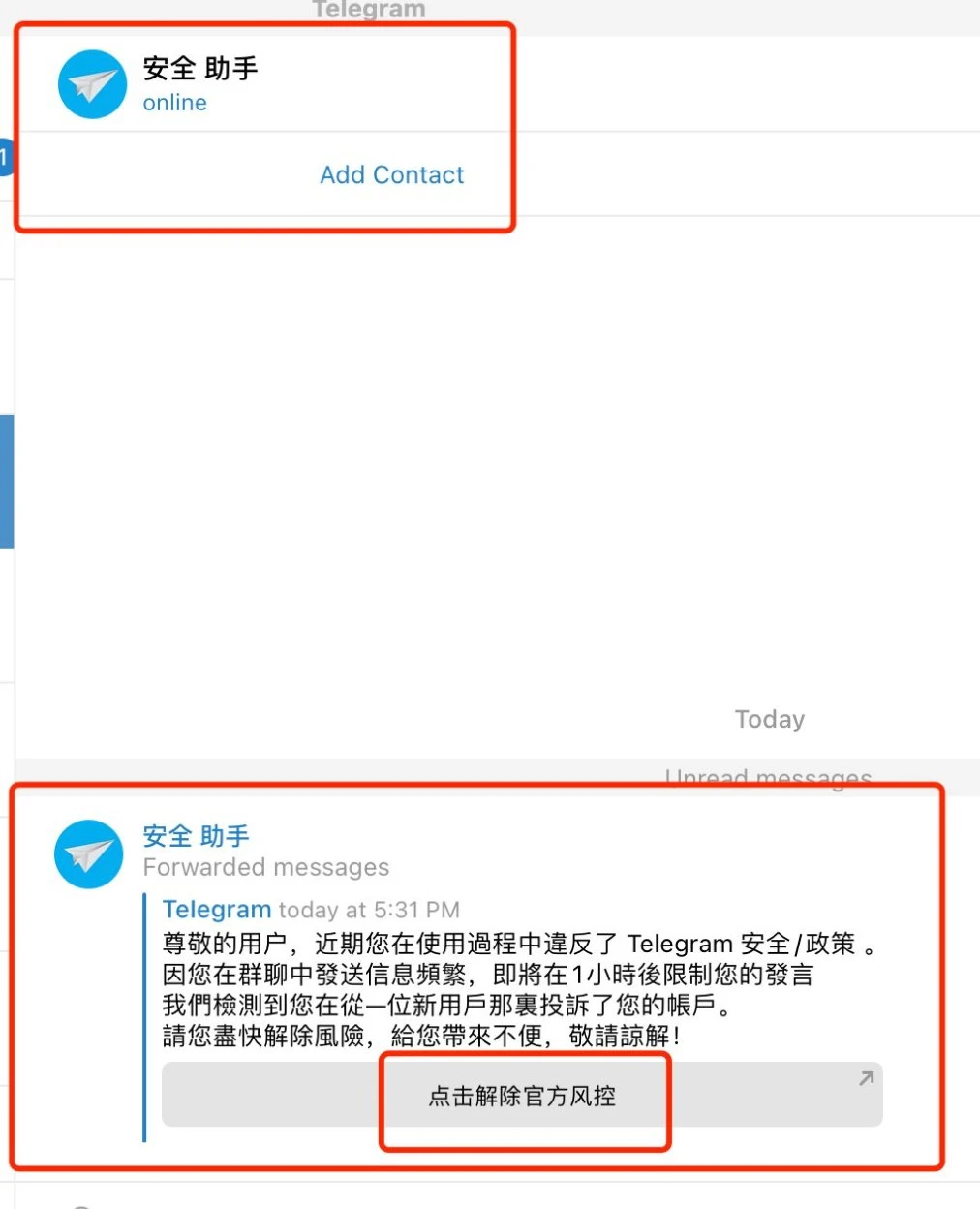 Telegram 很鸡贼地设置只有 Premium 会员才能屏蔽陌生用户,但是你可以看到未添加联系人的用户会有个「Block/Add Contact」选项,看到警惕就好。