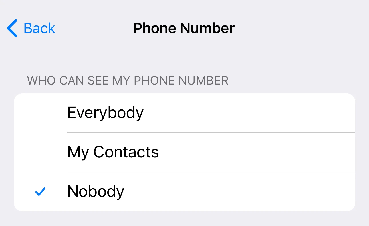同时,你还可以在设置的 Privacy and Security 隐私与安全这块,设置所有人都不能看到你的手机。