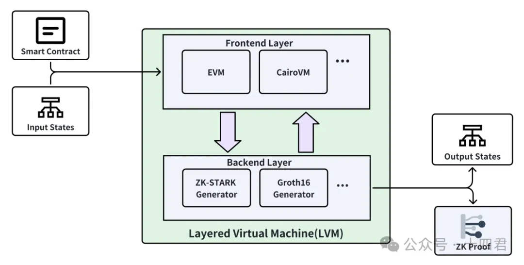 与常规印象的 VM 不同,Bitlayer 的 LVM 实现了前端智能合约的执行与后端的零知识证明器的解耦。VM 与零知识证明器以组件的形式存在于 LVM。这种创新使得 Bitlayer 可以扩展支持各种合约类型,以及各种零知识证明验证器,大幅提高了系统的扩展性与安全性。