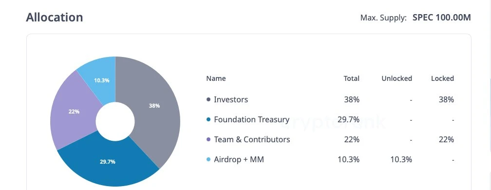 SPEC 已上市 Bybit、Gate.io、MEXC 等交易平台,流通市值 8500 万美元,FDV 8 亿美元