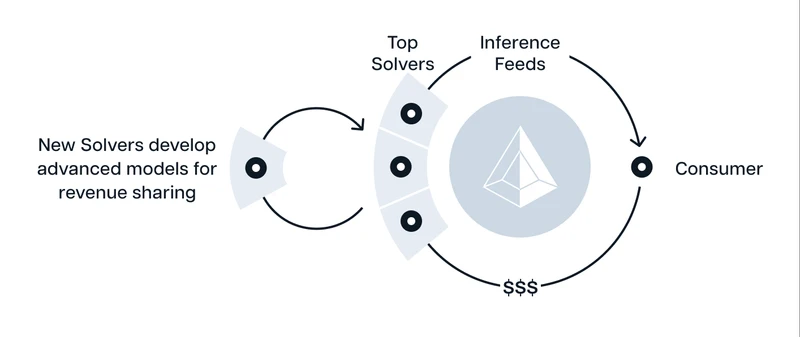 Spectral Nova,一个直接向智能合约提供机器学习推理的去中心化平台,顶尖科学家、企业、Dev、工程师等模型创建者可以在其中构建 AI 模型,获得用户付费收入。此外,模型创建者可以发布带有奖励的挑战。其中的求解者(赏金猎人)解决挑战,赢得奖励,或者获得收入分红。创建者、求解者、验证者和消费者在 Spectral 的机器智能网络上相互交互,通过激励机制形成飞轮。