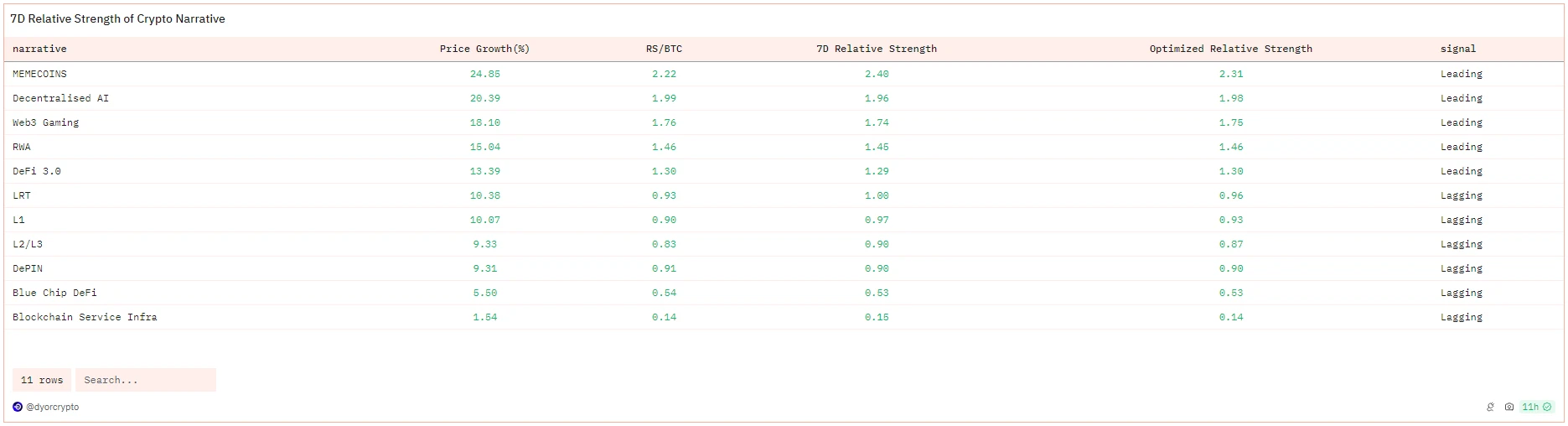 回看今年一月,美国比特币现货 ETFs 获批,引发了投资者的强烈看涨情绪以及正向资金流入。加密市场在 2024 年上半年继续增长,总市值增长了 37.3% 。有几个 Crypto 叙事获得了很强的动能,在我的印象里, Memecoin、AI、RWA 是表现最强劲的。就从上周的币价表现来看,AI 仍然是比较强的,仅次于 Memecoin。