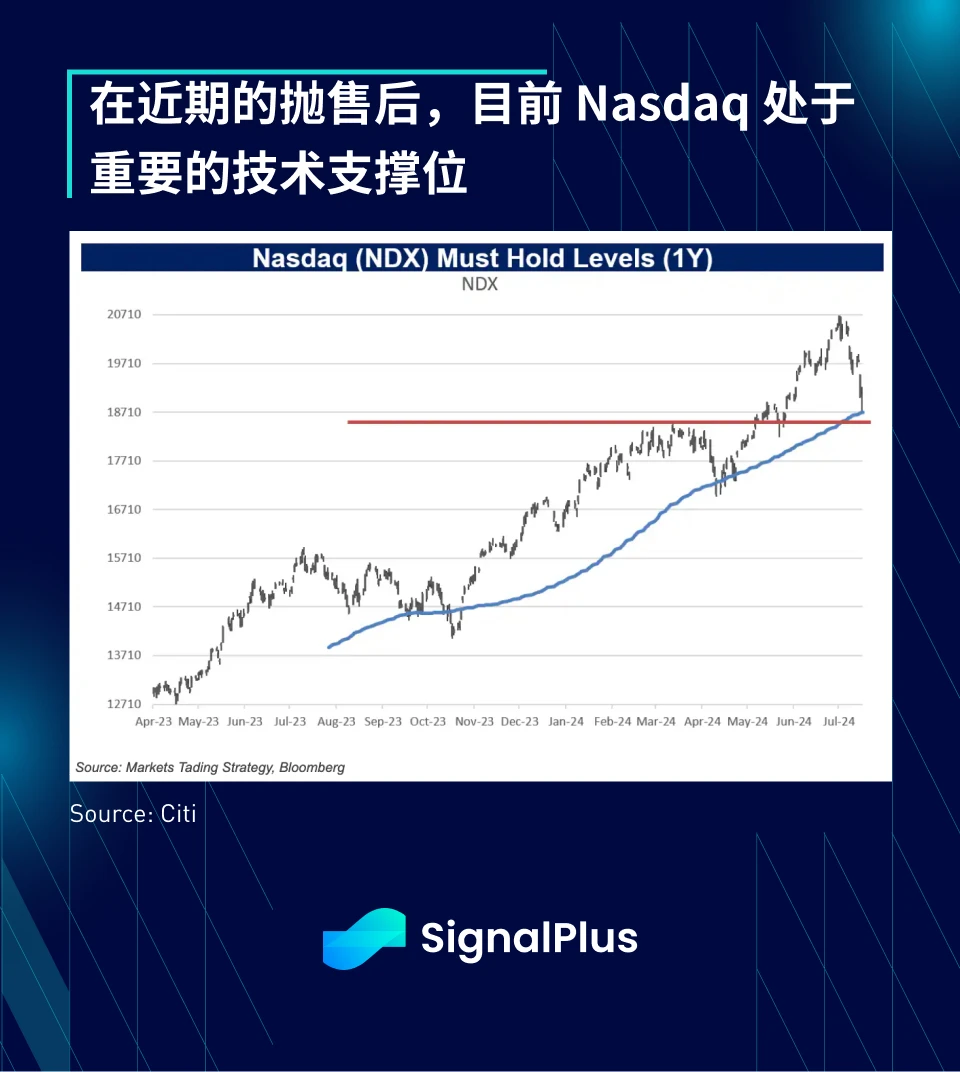 除了央行会议之外,本周也是美国就业数据周(ADP、JOLTS、NFP),且 Amazon、Apple、Meta 以及 Microsoft 都将在周二到周四之间发布财报,这一切都将发生在 Nasdaq 处于重要技术支撑位的关键时刻,而暑假期间稀薄的流动性可能会使波动进一步加剧。
