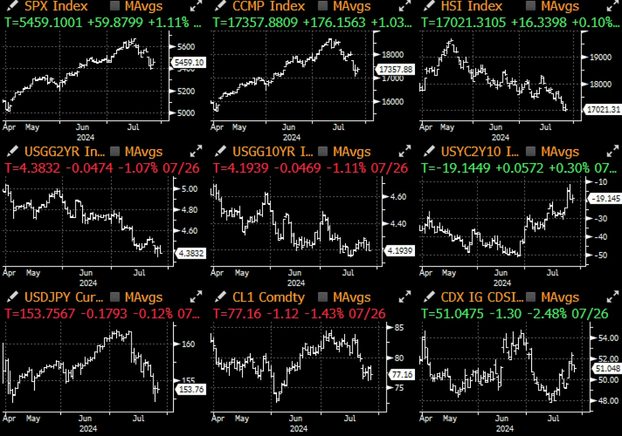 虽然没有单一的催化剂,但 Biden 总统退选与“Trump 交易”的各种平仓恰好同时发生,特别是在股市方面。此外,“大轮换”仍全速进行,在财报季来临之际,股市投资者继续从成长股转向小型股,期权交易员对小型股的看涨程度达到近 20 年来的最高水平(基于风险平价衡量指标)。