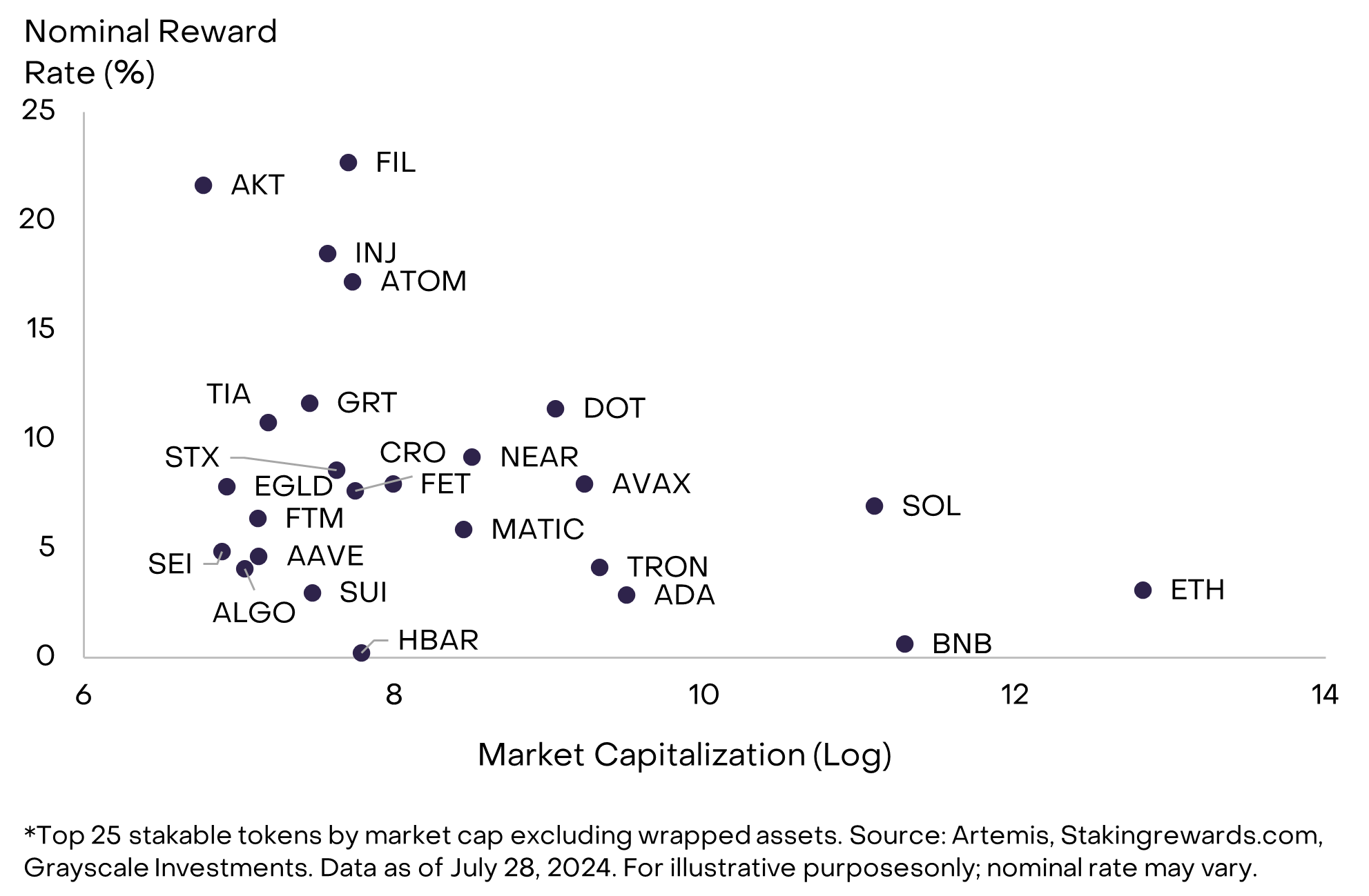 共识机制之于区块链就像法律和产权之于传统企业,是不可或缺的。随着加密行业的发展,Grayscale Research 预计 PoS 共识和质押将成为生态系统中越来越重要的一部分。虽然与加密资产价格波动相比,质押回报率通常较低,但随着时间的推移,它们可以成为额外的收入来源,因此许多代币持有者愿意成为验证者来赚取这些奖励。