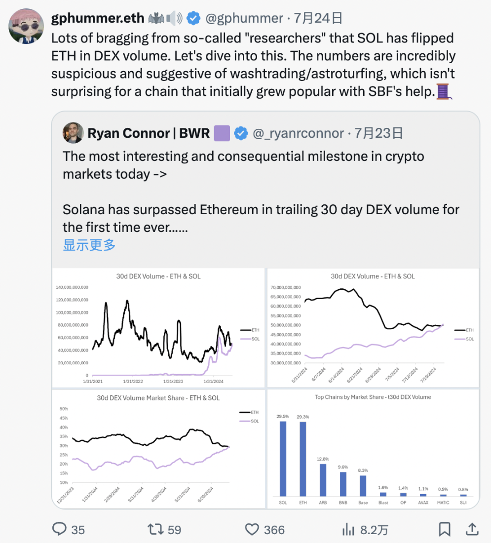 因此,Solana 上实际的用户、有机手续费收入和 DEX 交易量都被严重夸大了。