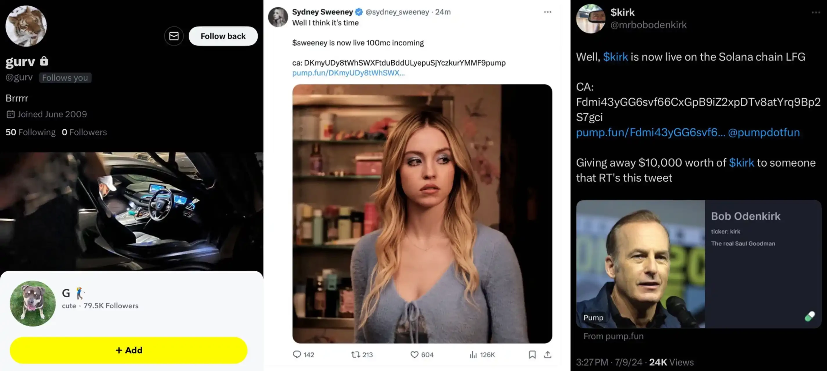 关于已定罪的英国黑客 Gurv(Gurvinder Bhangu)及其与最近 Sydney Sweeney 和 Bob Odenkirk 社交账号被盗的关系的调查显示,通过创建 Solana meme 币骗局,共计超过 53 万美元的资金被盗。