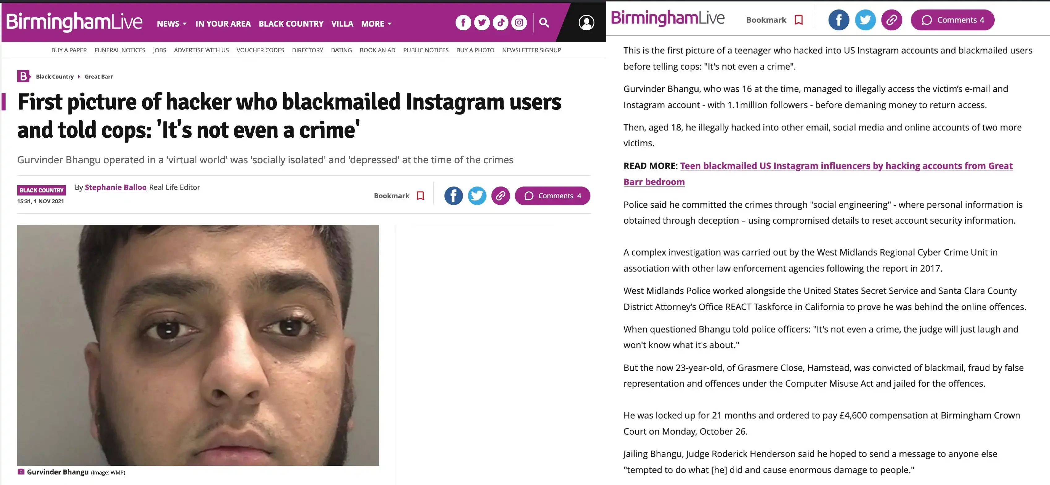 Gurv 是一名已被定罪的黑客,曾因入侵 Instagram 账户并勒索用户而在英国服刑。当时,Gurv 告诉执法部门:「这甚至不算犯罪。」