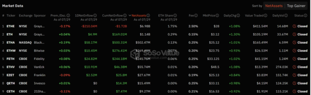 如下图所示,绝大部分的抛售压力主要来自 Grayscale。截至 7 月 29 日,包括贝莱德、Bitwise 和富达在内的其他主要现货 ETH ETF 都记录了每日正流入。