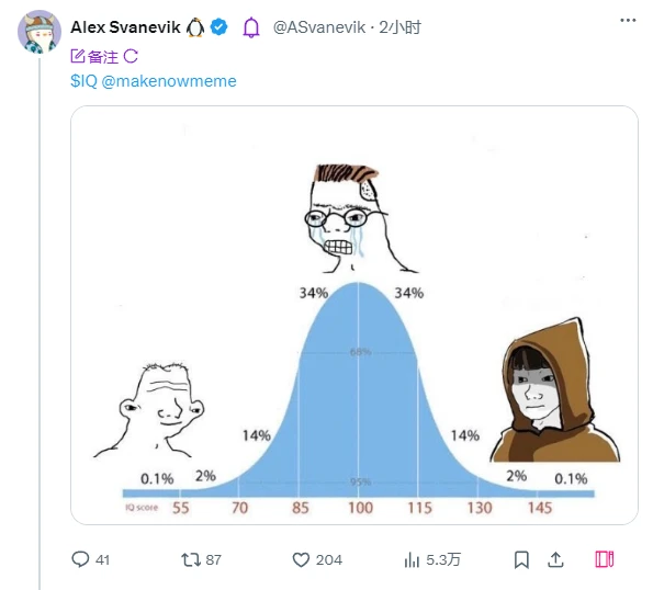 今日下午,Nansen 创始人 Alex Svanevik 在 X 平台上发布一篇帖子 ,内容为“$IQ @makenowmeme”。