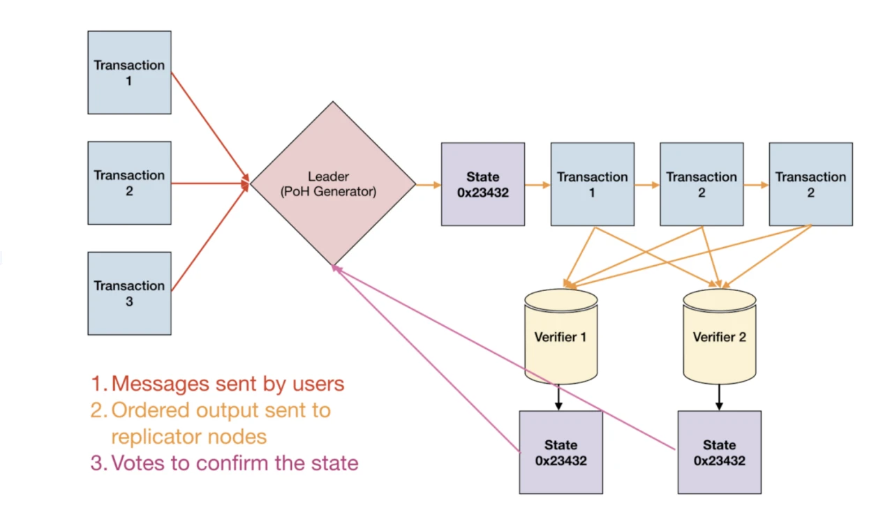 这个就是其 Proof of History 技术的核心含义,上一个区块 hash,将作为下一个 sha 256 函数的一部分,类似于一个链条,最新的 Y,总是包含了历史的证明。