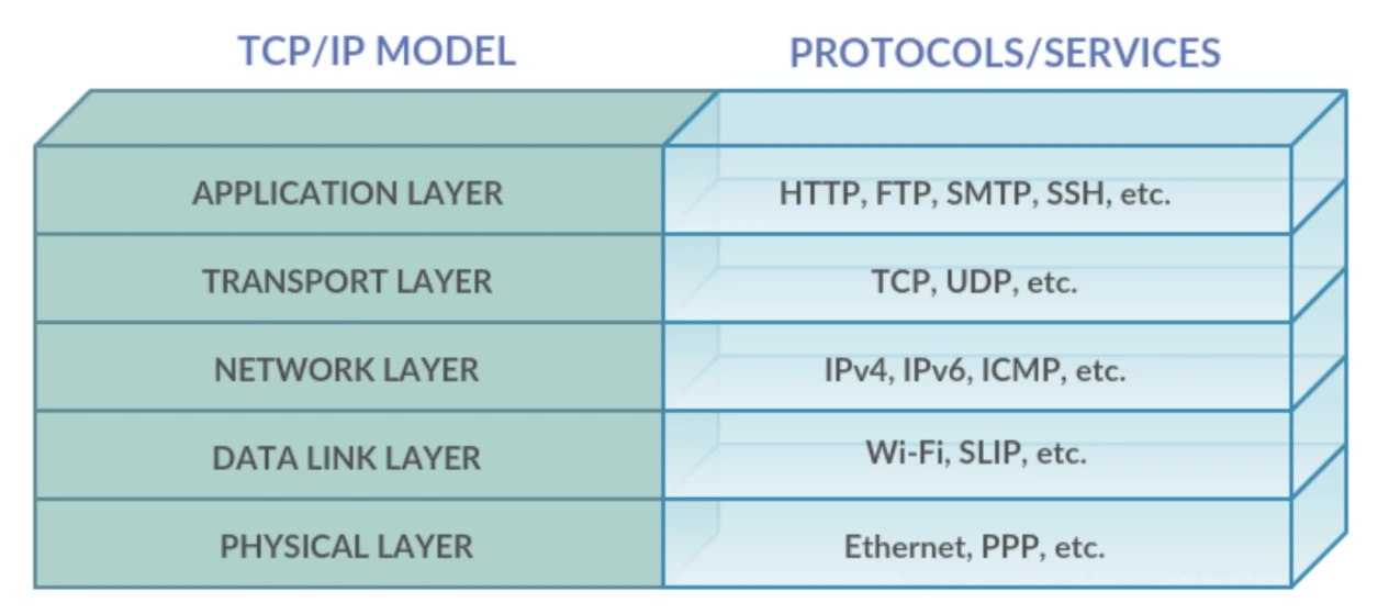 网络协议层级—— 5 层结构, 图源: Research Gate